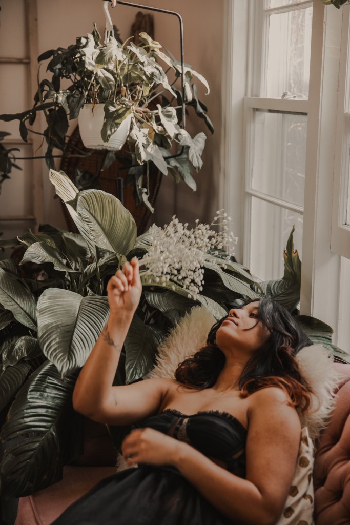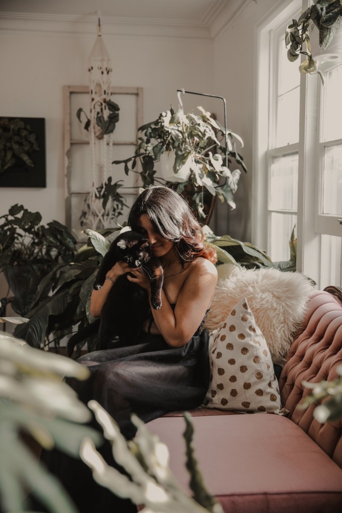 Casey Cunningham (the crazy plant lady), is a portrait photographer. She has a Bachelor in Fine Arts in photography and has a passion for everything vintage. Casey has always loved nature and that shows in her gorgeous studio apartment where these moments have been shot. She has tried to incorporate a rather “bohemian” look to her apartment (also the studio she uses for photoshoots) and has a separate area for her small business work within the studio.